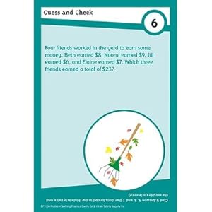 Product Description : EP-3384 Building math skills is a blast with these self-checking cards! * Cards offer practice in applying problem-solving strategies to various types of math problems * Questions include equations , story problems , graphs and more * Strategies include Guess and Check; Make a Table, List or Chart, Draw a Picture; Use Logical Reasoning; Look for a * Pattern; and Work Backward * Real-life questions promote research-based practice * Address Title I requirements by promoting parent involvement * Double-sided cards add value for customers * Self-checking cards allow individual practice * Fun format engages learners * Promotes higher-level thinking and reasoning skills * 4-3/4 x 7" cards * Teacher guide * Set of 40