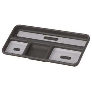 Product Description : Organize pens, pencils, clips and other supplies. Deep compartments for more storage. Icons in each compartment to help organize. Premium design, look and feel. Accessory Type: Drawer Organizer. Color: Black & Gray. Dimensions: 12-3/4" W x 5-3/4" D x 1-1/4" H. Collection: Made Smart. Finish / Material: Plastic.