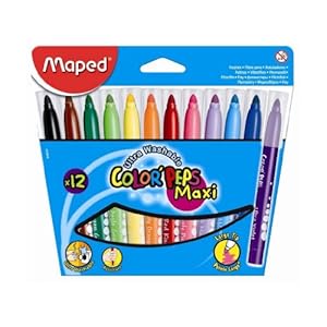 Product Description : Maped is synonymous with continuous innovation, top design and high quality. Maped Color Peps Maxi Washable Felt Markers come in a pack of 12 markers. Each marker has a large felt tip point with a secure matching color lid to make sure the markers don't dry out. For easy identification, the ink color is printed on the barrel of each marker. Maped Color Peps Markers contain bright ink that is ultra washable, making them an excellent choice for students, especially in a school environment. They are also great for home use too! Let your little artist color to their heart's content with Maped Color Peps Markers! For over 60 years Maped has been creating innovative, high-quality products and renewing the often traditional school and office accessories markets with an assortment of ergonomic and eye-catching products tailored to the needs of the consumer. Maped is an expert in providing attractive and functional school and office products to over 125 countries all over the world!