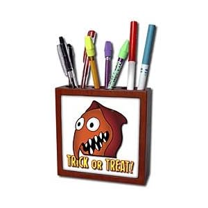 Product Description : GOBLIN trick or treat 1 on white Tile Pen Holder is measuring 5w x 5h x 2d. Made from high quality solid mahogany wood with satin finish and one 4.25 commercial grade mirror gloss ceramic tile. Looks great on a desk or counter top with a full color custom imaged tile.