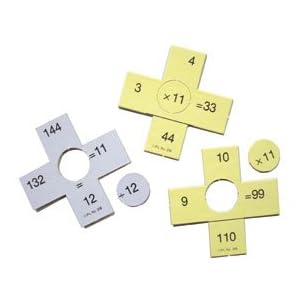 Product Description : Cross Math Puzzles - Multiplication & Division. Cross Math Puzzles are designed to provide a new dimension to the mastery of basic multiplication and division facts. These puzzles contain 144 multiplication facts and 144 division facts. The facts are written in horizontal or sentence form and in vertical or column form. With little supervision, small groups or individuals can develop accuracy by means of this manipulative activity. Students improve their computational skills and enjoy themselves in the process. STUDENT OBJECTIVES: The student will: Improve accuracy in basic multiplication facts; Improve accuracy in basic division facts: Perceive numerical relationships: Demonstrate fine motor control by manipulating puzzle pieces. SUGGESTIONS FOR USE: Introduce the puzzles containing the facts you wish to present. Show the students how the center circle is part of two facts on each side - one horizontal and one vertical. Here are a few of the many ways to group the puzzles for extra practice and reinforcement of concepts: 1) Show any times table or combination; 2) Show any division group; 3) Display combination facts with multiplier and divisor one through twelve; and 4) Contrast inverse relationship of multiplication and division. ADAPTATIONS: For individuals to compete with their own time, use a stopwatch or a set of one to three minute timers to spur on speed and accuracy. For team effort the puzzles may be completed to determine speed and accuracy in competition.