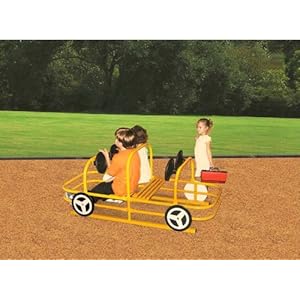 Product Description : Four steering wheels. Two bench seats. Great addition to any play space. Capacity up to 4 children. Ages 2-5 years. Comes Fully assembled. Meets CPSC Guidelines. Warning: Do not install any playground equipment directly over paved surfaces such as concrete or asphalt. The area under the playground equipment must be covered with impact absorbing material. Direct Bury- installs anchors into concrete footers in the ground. Ground Stakes- installs with stakes hammered into the groud to secure item. Surface Mount- installs anchors into a solid surface, such as conrete or asphalt.