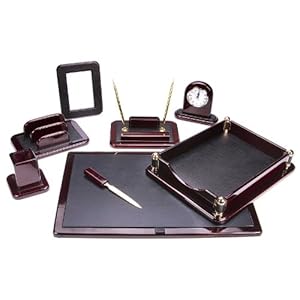 Category: Office Products Vendor: Paper tray, letter opener Picture frame, blotter Pen stand, business card holder, pencil holder Letter holder, Clock Leather in Product Description : 8 Piece Oak & PU Leather Desk set