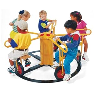 Product Description : Specially designed for indoor as well as playground use. Requires little space and is great for limited play spaces. It is an ideal choice for strengthening large muscles and motor skills. Main wheel is strong, but carefully crafted to be lightweight enough for only one child to turn it easily. Solid steel track and redesigned handlebars make this an extremely safe and popular playground equipment choice. Age 2.5-5 Years. Patent Design. 4-Seater. Warning: Do not install any playground equipment directly over paved surfaces such as concrete or asphalt. The area under the playground equipment must be covered with impact absorbing material. Direct Bury- installs anchors into concrete footers in the ground. Surface Mount- installs anchors into a solid surface, such as conrete or asphalt.
