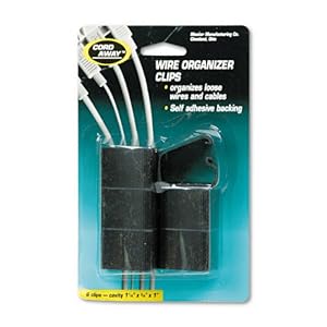 Product Description : Master Caster - Self-Adhesive Wire Clips, 6/Pack - Sold As 1 PackControl flow of wires in work areas by clipping them in place. Keep wires tangle-free and safely out of the way by directing them around corners or angles. Self-adhesive backing sticks where needed. Cable Management Type: Clip; Closure: N/A; Color(s): Black; Length: N/A.Controls flow of wires in work areas.Keeps wires tangle-free and safely out of the way.Self-adhesive.