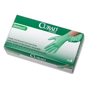 Product Description : Curad Aloetouch Latex Exam Gloves offer soothing protection to your hands while you work. Gloves are coated with aloe vera that naturally helps moisturize and soothe dry hands. Durable, natural rubber latex gloves offer superior barrier protection and are powder-free to minimize skin irritation. Fully textured surface provides a sure grip on instruments and dressings. These gloves are ideal for anyone who changes gloves frequently, washes hands repeatedly, or wears gloves for extended periods of time.